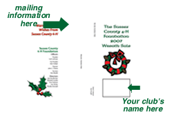 To help you we’ve put together a flyer explaining the Sussex 4-H wreath sale. The flyer may be downloaded and opened in Adobe Acrobat Reader (freeware). There is a space on the front for you to add your club’s name. The back panel of the brochure has been set up so that you may attach address labels for a mailing. The inside includes an order form.